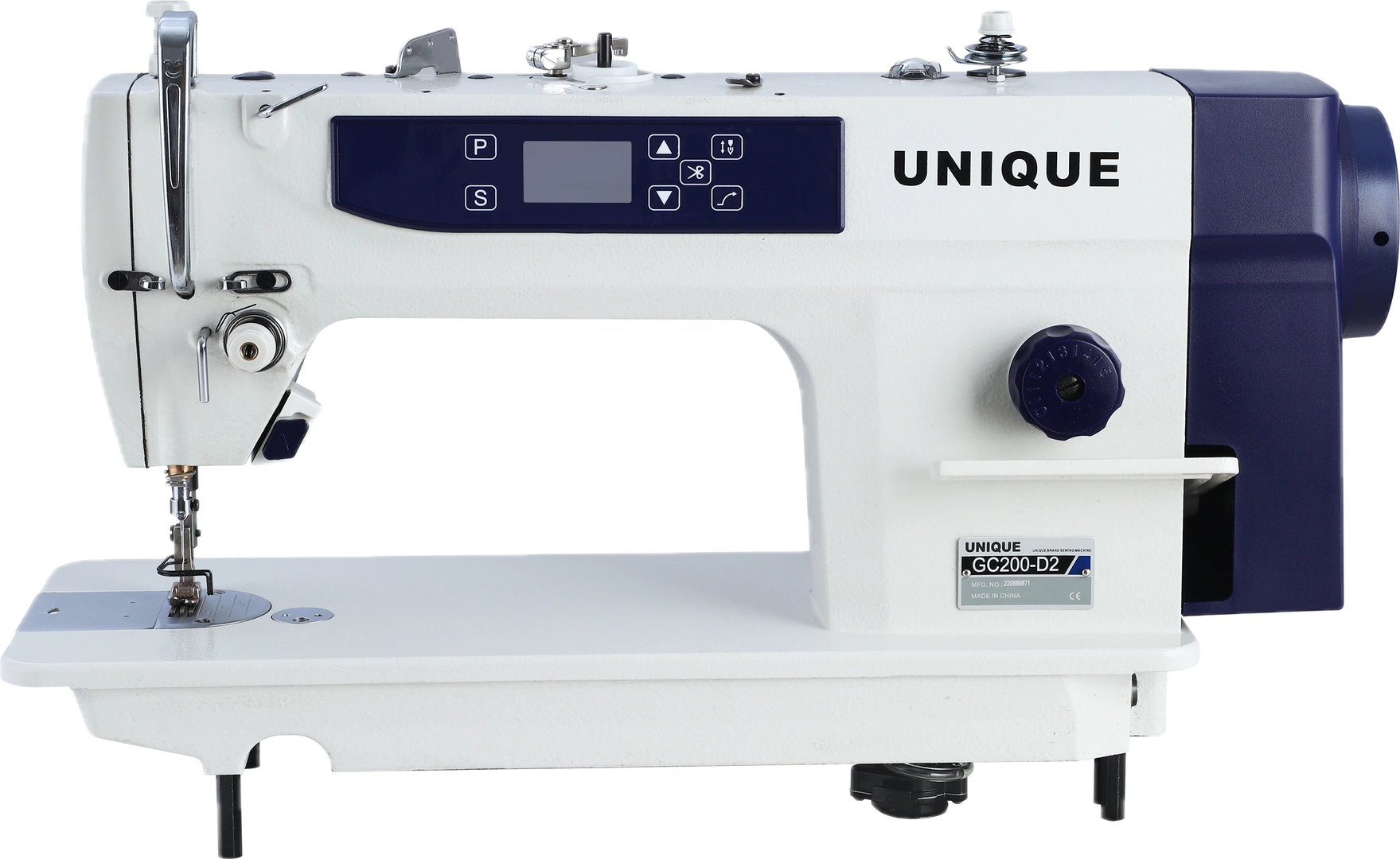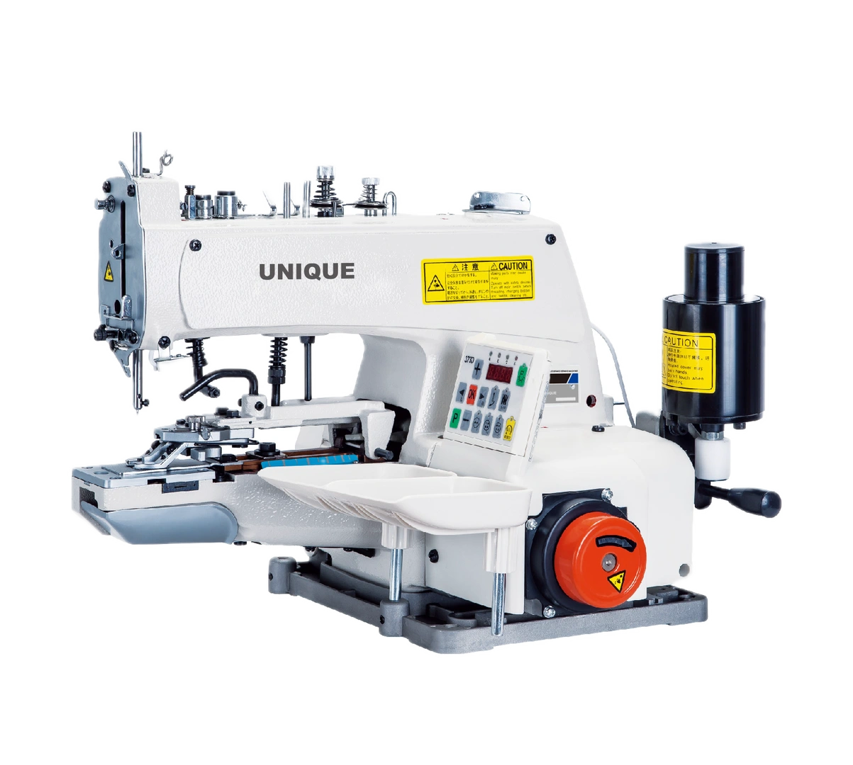Ipari egyszálas láncöltésű gombfelvarrógép. Fejbe épített energiatakarékos szervo motorral, kétlyukú, négylyukú és X varrására alkalmas, opcionálisan fülesgomb felvarró apparát vásárolható hozzá, digitálisan állítható 3 különböző öltésszám.