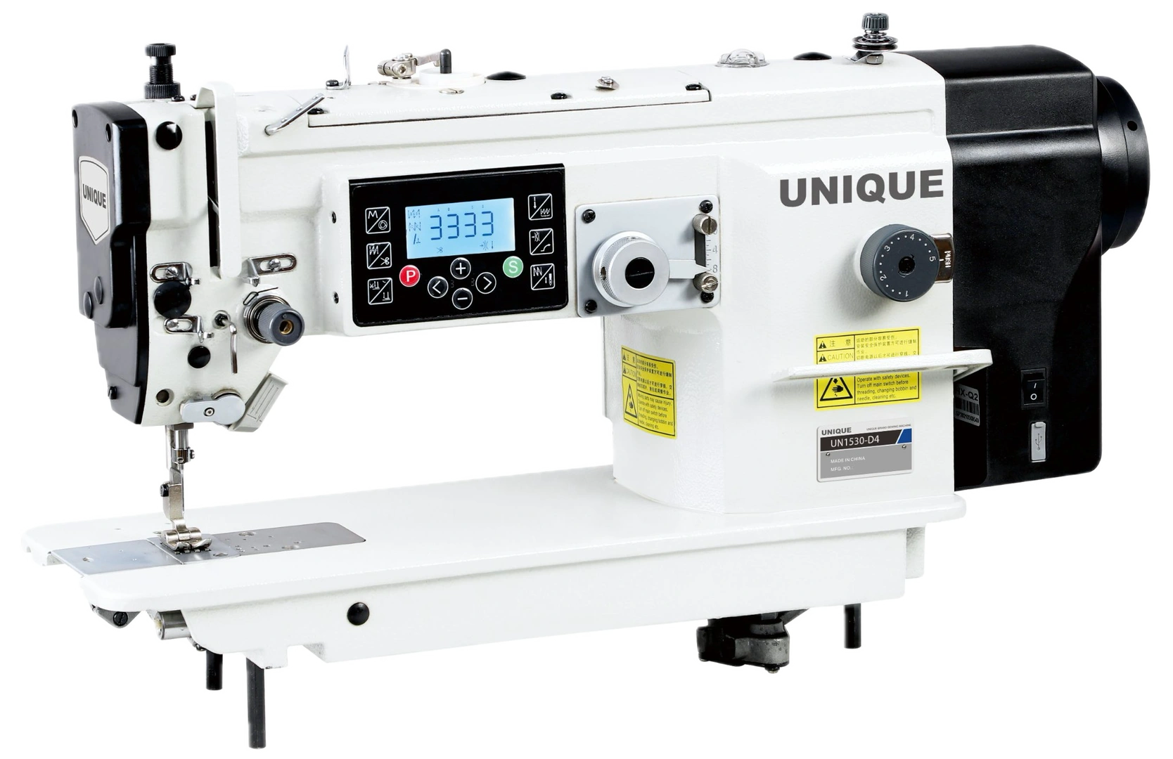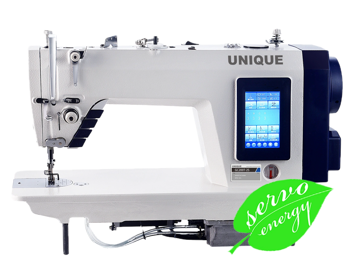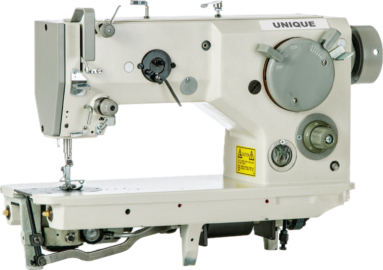 Egytűs ipari cikk-cakk varrógép. Energiatakarékos szervo motor, mechanikus tűrúd mozgatás, alsó-felső tűholtpont megállítás, központi olajozás.